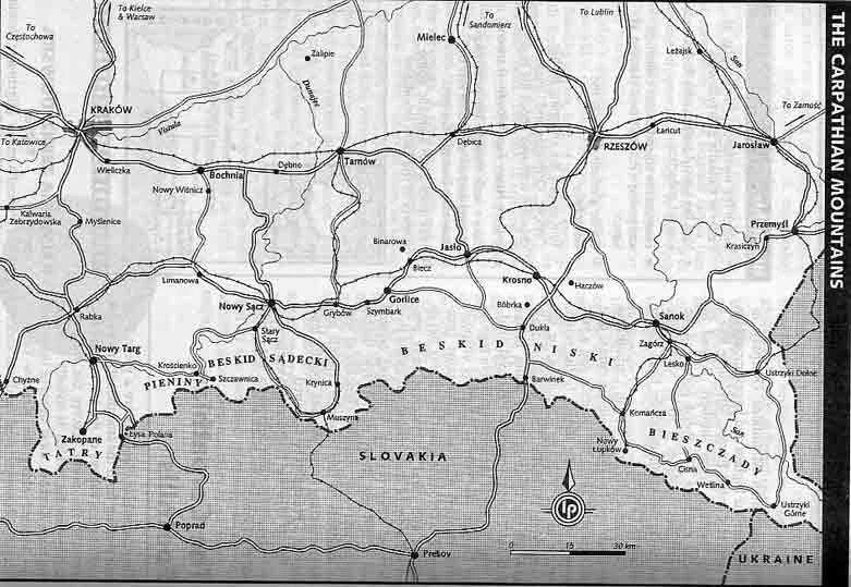 The Carpathian Mountains (called Karpaty in the Czech Republic, Poland and Ukraine and Carpatii in Romania) are a major Central European mountain system which form a 930 mile semi-circle linking the Balkans and the Alps. They begin in southwest Slovakia and range along the Czech-Slovak border to Poland. They then range from the Tatras through the Beskids (our ancestral villages are in the Beskid Niski) through West Ukaine to the Transylvanian Alps in Romania.
